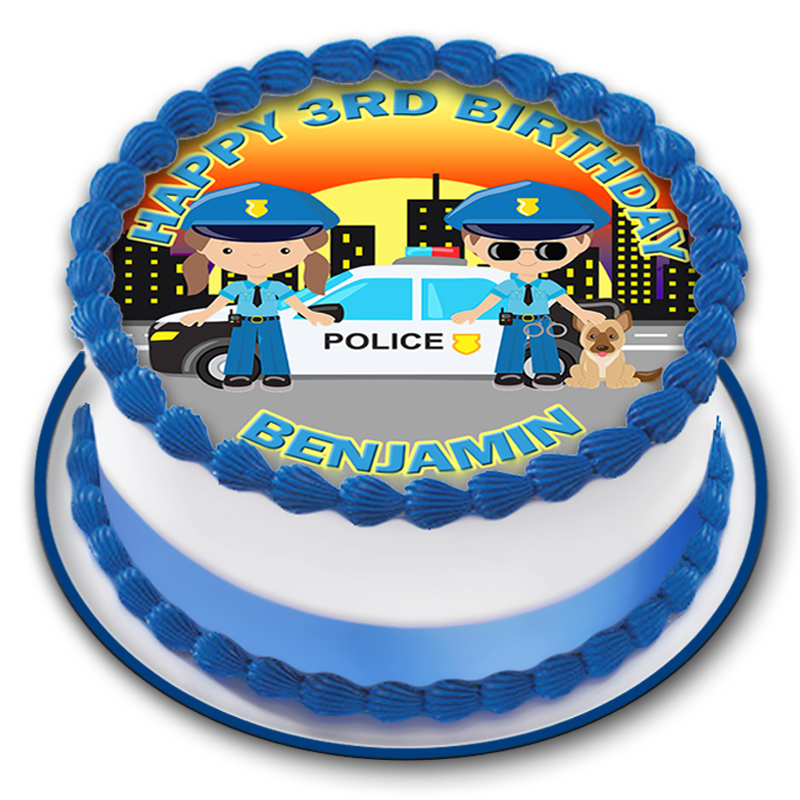 Police Car Edible Cake Image Icing Personalised Birthday Decoration Party Topper Ebay