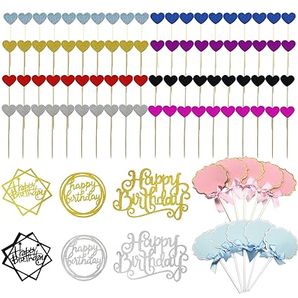 Seasonsky 96 Pcs Happy Birthday Cake Decoration Mixed Color Heart Shaped Birthday Handmade Cake Topper And Blank Decoration Cake Toppers Decoration For Party Decoration Amazon Com Grocery Gourmet Food